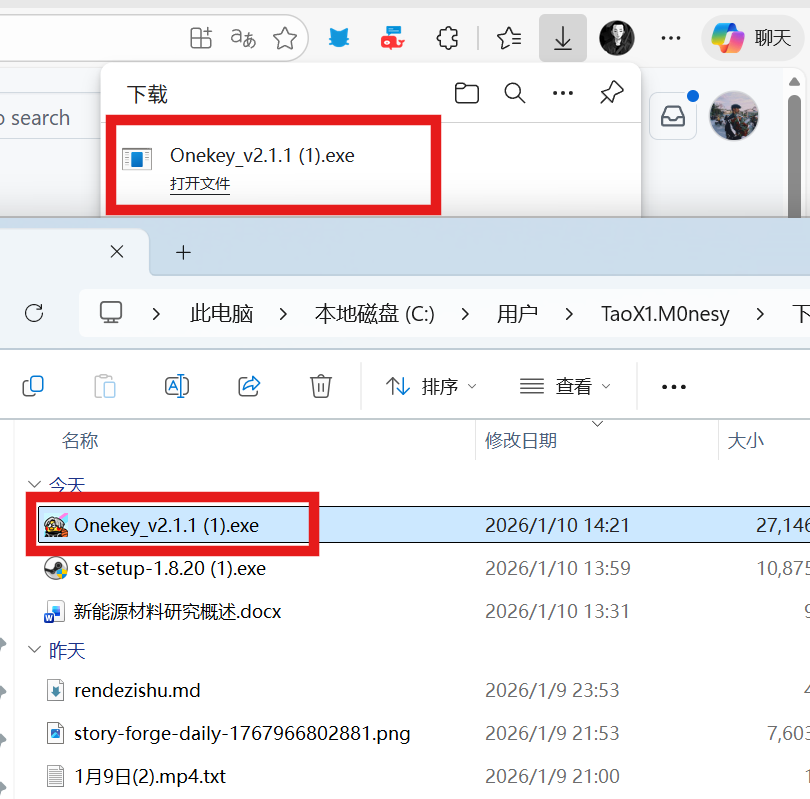 - 找到下载好的Onekey.exe文件