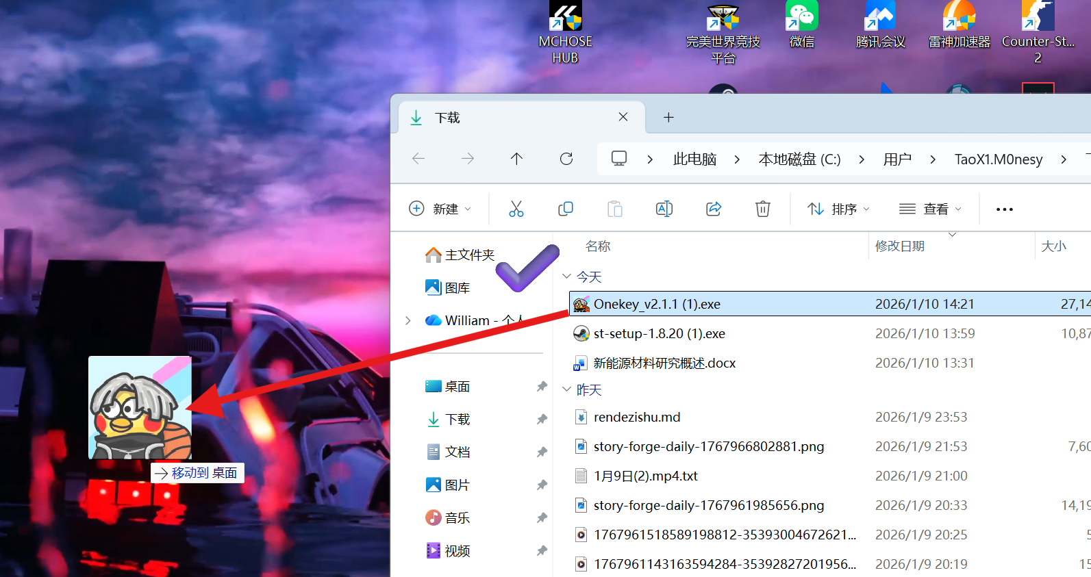 2. 将Onekey文件放置到桌面