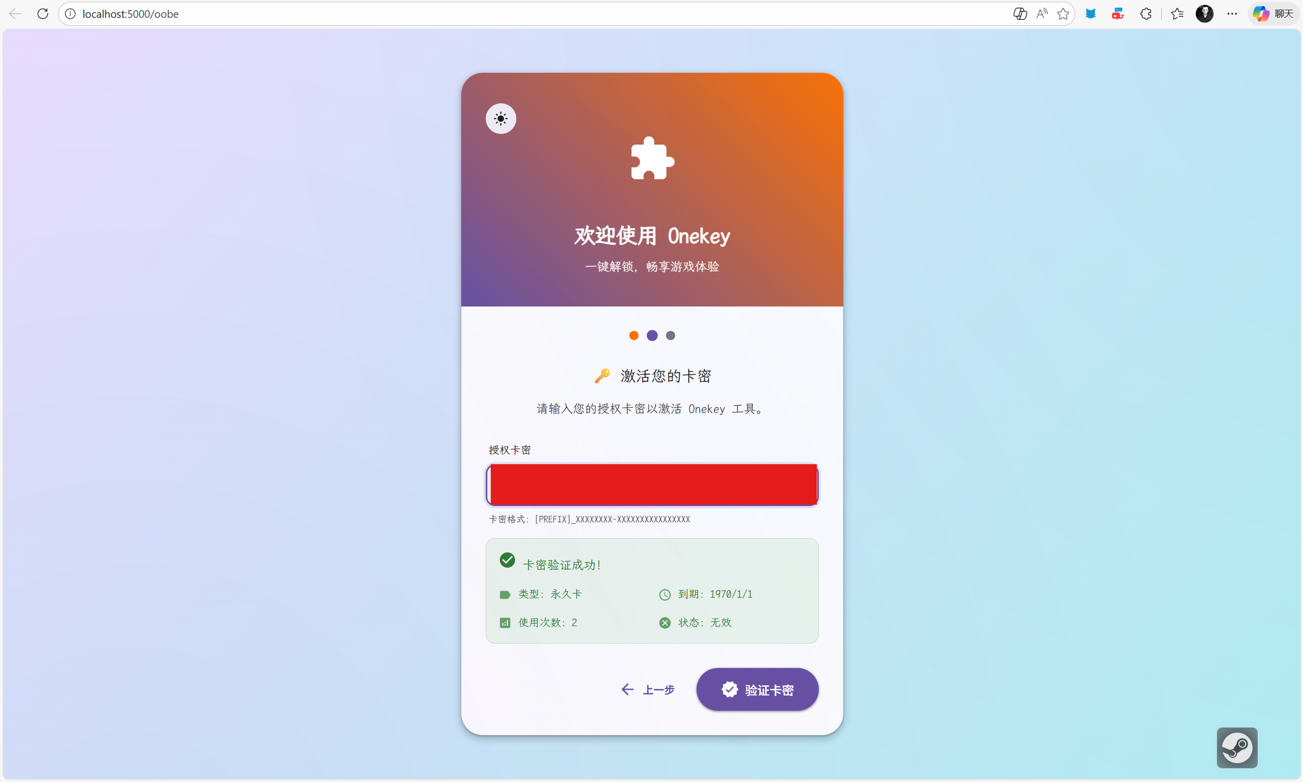 - 点击「验证卡密」按钮