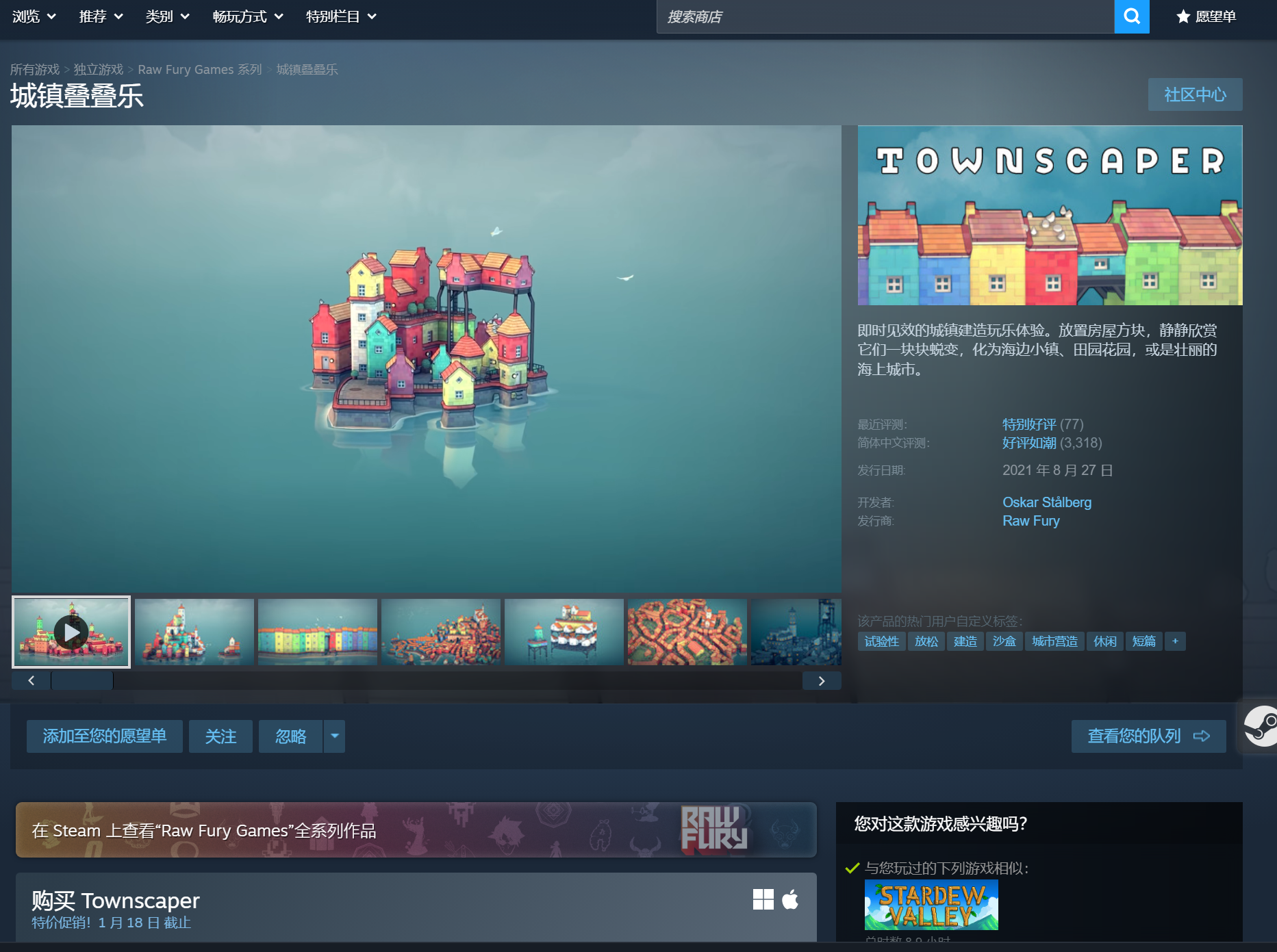 https://store.steampowered.com/app/1291340/Townscaper/ - 这里的