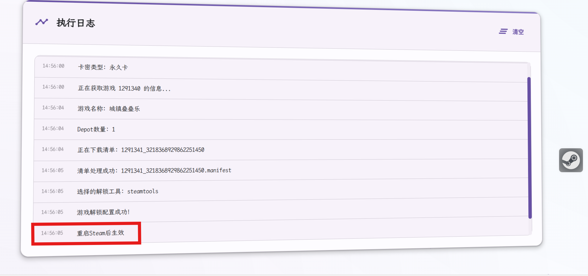 解锁成功后,我们需要重启Steam才能使解锁生效: